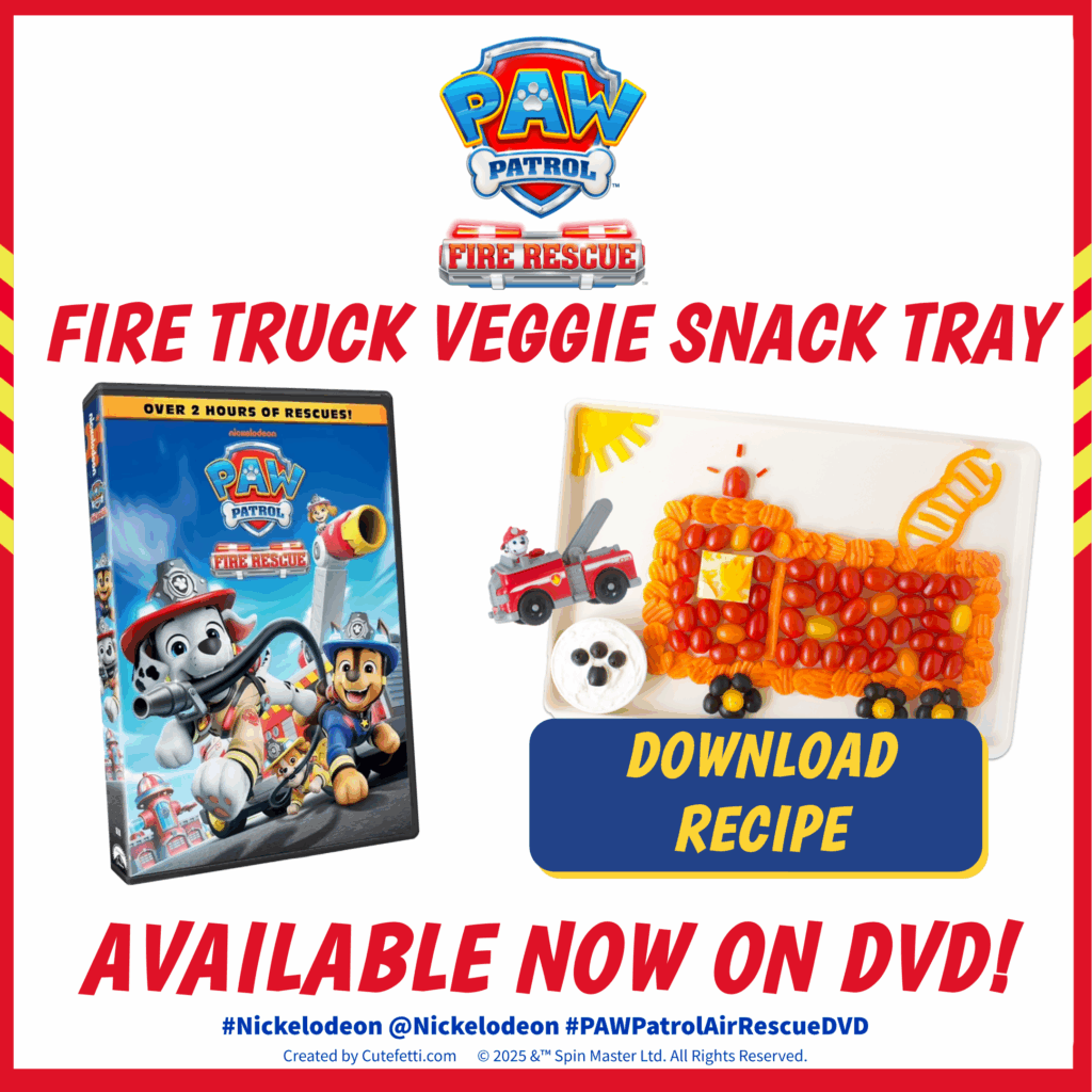 Puptastic news! PAW Patrol: Fire Rescue is available NOW on DVD! 📀 🛒 Today, we're making a Fire Truck Vegetable Platter to celebrate the festivities! This easy snack idea is perfect to pair it up with. Keep reading to see how to make it. This post is sponsored by Nickelodeon.